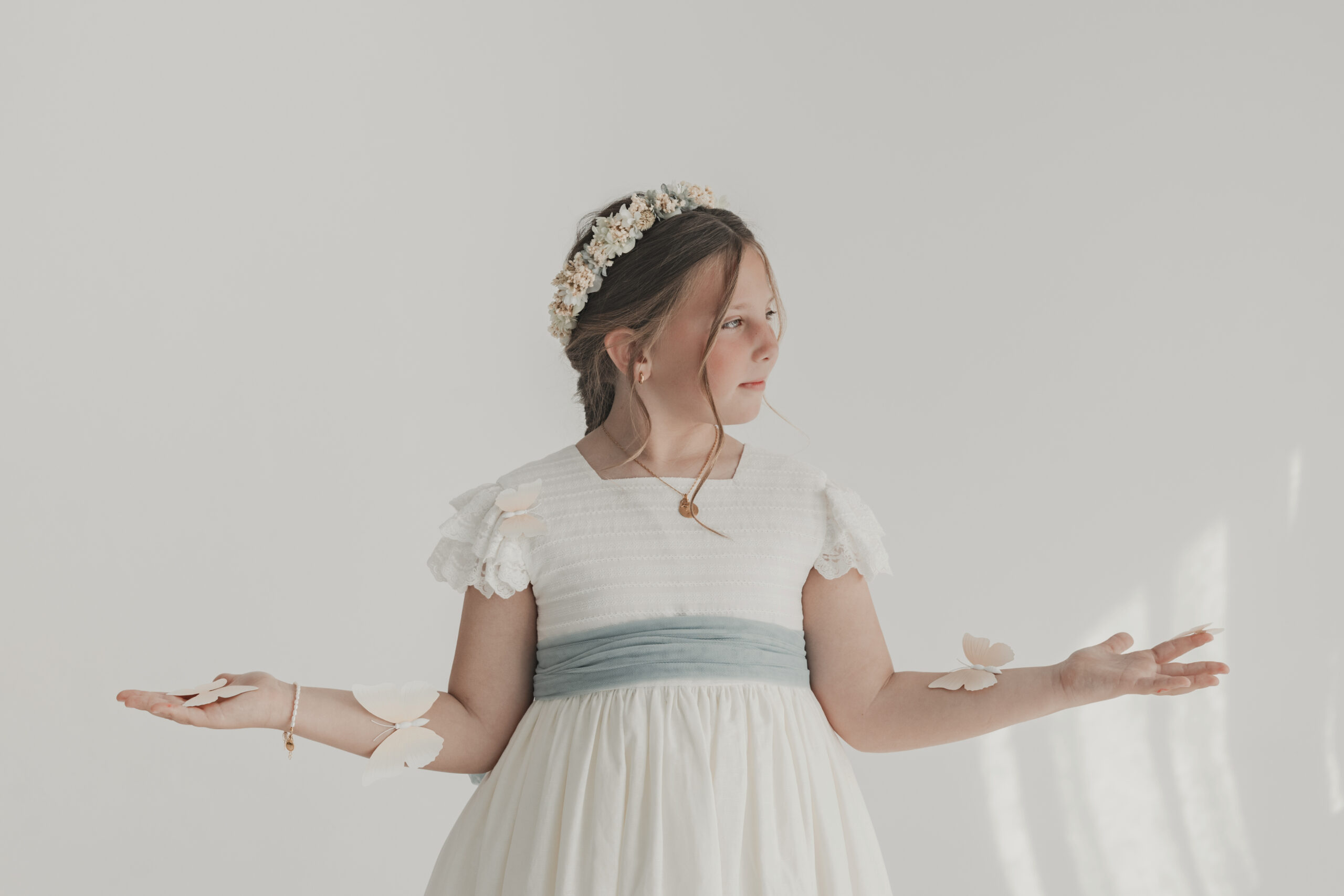La comunión no es solo un día: es una etapa, un tiempo en el que todo está a punto de cambiar. Todavía hay juegos, inocencia, risas espontáneas… y también una nueva forma de mirar el mundo. Por eso, estas sesiones no buscan disfraces ni escenarios recargados. Aquí, la protagonista o el protagonista es tu hijo o hija, tal como es. Con su forma única de ser, de mirar, de sentirse mayor y pequeño a la vez. Fotografías naturales, elegantes y atemporales que celebran quiénes son hoy, antes de dar el siguiente paso. Un recuerdo real, cuidado y lleno de alma.