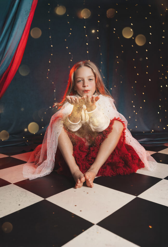 Entre cortinas de terciopelo, luces cálidas y decorados encantados, cada sesión se convierte en una pequeña función donde la ilusión cobra vida.